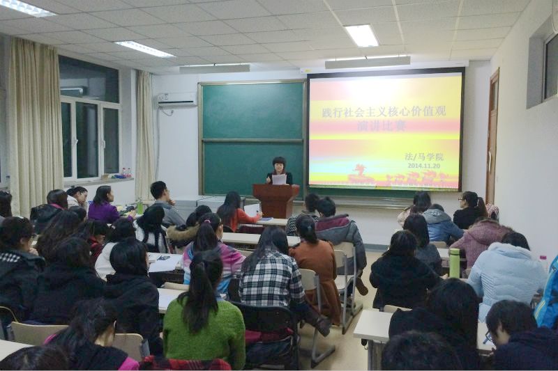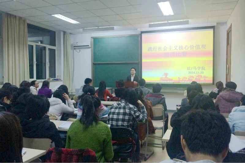 為深入學(xué)習(xí)貫徹黨的十八大及十八屆四中全會精神,推動以“三個(gè)倡導(dǎo)”為基本內(nèi)容的社會主義核心價(jià)值體系的學(xué)習(xí)、宣傳和踐行,11月20日,法/馬學(xué)院舉辦了“踐行社會主義核心價(jià)值觀”的主題演講比賽。經(jīng)過班內(nèi)選拔初賽,來自14級研究生四個(gè)班級的16組選手進(jìn)入決賽。學(xué)院黨總支副書記文四英、輔導(dǎo)員朱艷新、黨員工作站站長、院研會主席應(yīng)邀擔(dān)任評委。