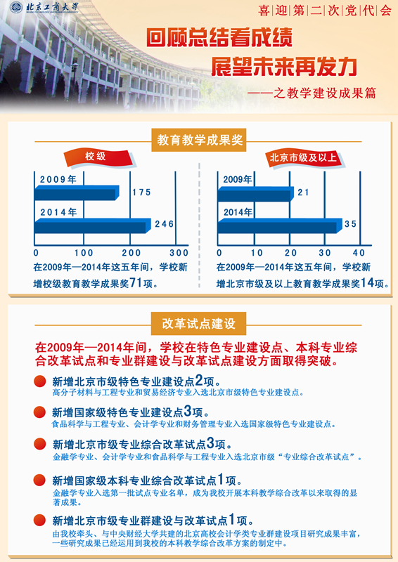 編者按:2009年5月,學校召開合校后的第一次黨代會,確定了建設高水平的特色鮮明的教學研究型大學的宏偉藍圖。五年來,在學校黨委的領導下,全體師生員工團結一心,銳意改革,按照第一次黨代會確定的發展目標奮力前行,學校各項工作取得了重大進展。在學校第二次黨代會即將召開之際,黨委宣傳部在新聞網上編輯制作“回顧總結看成績,展望未來再發力”主題宣傳,以圖片、數字等方式展現第一次黨代會召開五年來學校取得的主要成績和工作進展,期冀進一步凝聚力量,鼓舞斗志,堅定不移地向著建設高水平、有特色的教學研究型大學的目標前進!