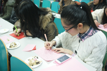 外國語學院精心設計制作“我們走過的100天”紀念視頻、海報,回顧記錄14級新生入學至今的點滴,分別從“軍訓進行時”、“新生運動會”、“入學教育周”、“學業引航站”、“期中大考時”五個部分,圍繞“文明、和諧、誠信、友善”的核心價值觀,展現新生100天的成績、榮譽和風采。同時,同學們還繪制了手工生日信筒,每個同學書寫“給班級的一封信”,寄語班級與同學,表達對身邊同學的關愛、爭創優秀班集體的決心。英語141班班長張珈熙談到雖然大家來自五湖四海,但平時互幫互助,雖離家在外卻能感受到老師、同學的關心幫助如家般溫暖。同學們紛紛表示希望通過參與班級、學院舉辦的各項活動逐漸形成團結互助友愛的班集體,以行動踐行核心價值觀。