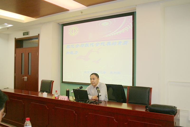 史利國主席結(jié)合當(dāng)前國家的政策和高校面臨的形勢和任務(wù),以《教代會和教代會代表的素質(zhì)和能力》為主題,從教職工代表大會是學(xué)校民主管理的基本形式、教代會與教代會代表的職權(quán)、教代會代表的素質(zhì)和能力等三個方面進(jìn)行了講解,闡述了教代會的重要意義,結(jié)合《學(xué)校教職工代表大會規(guī)定》(教育部32號令),系統(tǒng)講解了教代會的八大職權(quán),提出了教代會代表應(yīng)具備的三大素質(zhì)。他還對北京市委教工委、市教委、市教育工會討論的《關(guān)于加強新形勢下學(xué)校教職工代表大會的工作意見》進(jìn)行了詳細(xì)解讀,從教代會的民主建設(shè)、基本原則、各項權(quán)利、自身建設(shè)以及程序、組織保障等六個方面分析對比了新舊文件的變化。他強調(diào),教代會作為高校民主建設(shè)的重要形式,其地位和作用顯著提高,學(xué)校工會要承擔(dān)起教代會工作機構(gòu)的職責(zé),其責(zé)任越來越重大。