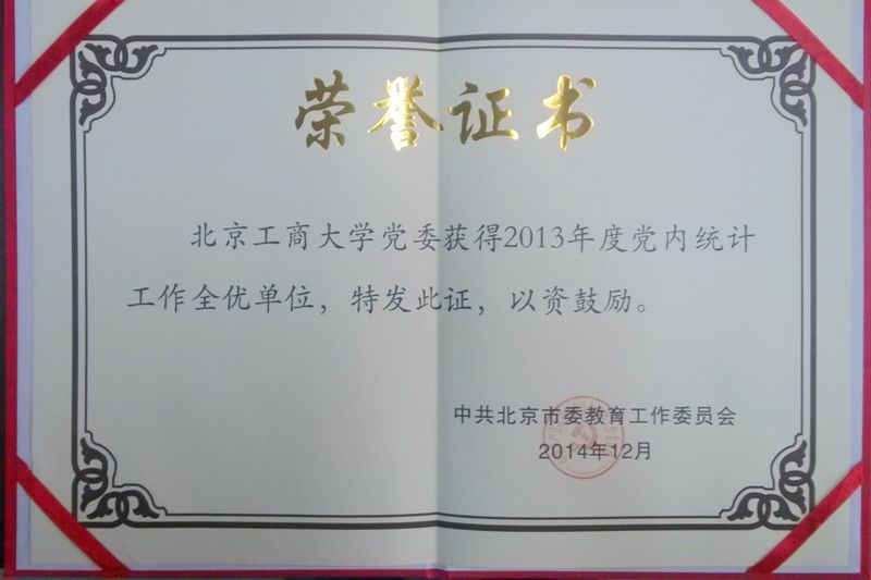 學校黨委高度重視黨內統計工作,按照市委教育工委的統一部署,從嚴從實工作,把好數據關,認真審核、上報數據。在各基層黨組織和相關職能部門大力支持下,學校每年都能夠高效規范地完成黨內統計工作,2004年-2013年,學校黨委6次獲得黨內統計全優單位榮譽,4次獲單項優秀,成績在北京各高校中名列前茅。