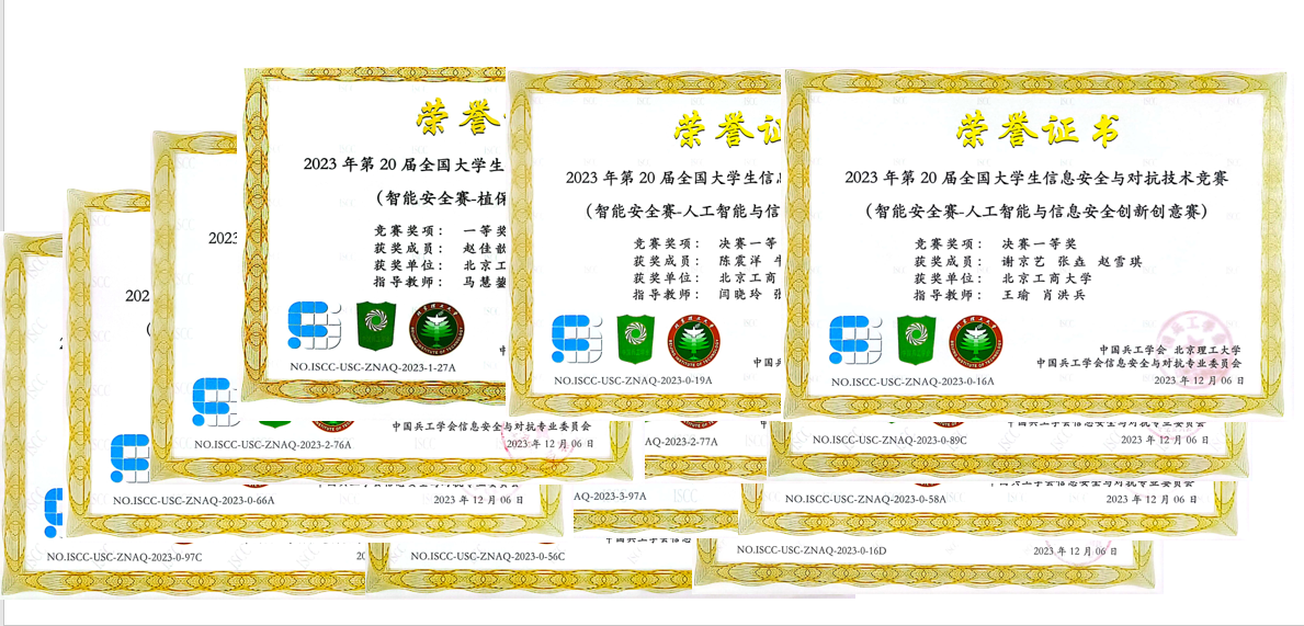 近日,第20屆全國大學生信息安全與對抗技術競賽“智能安全賽”決賽在京舉行,北京工商大學代表隊展現出卓越的技能和團隊合作精神,在激烈的角逐中脫穎而出,榮獲佳績。共獲得一等獎4項、二等獎7項、三等獎9項。