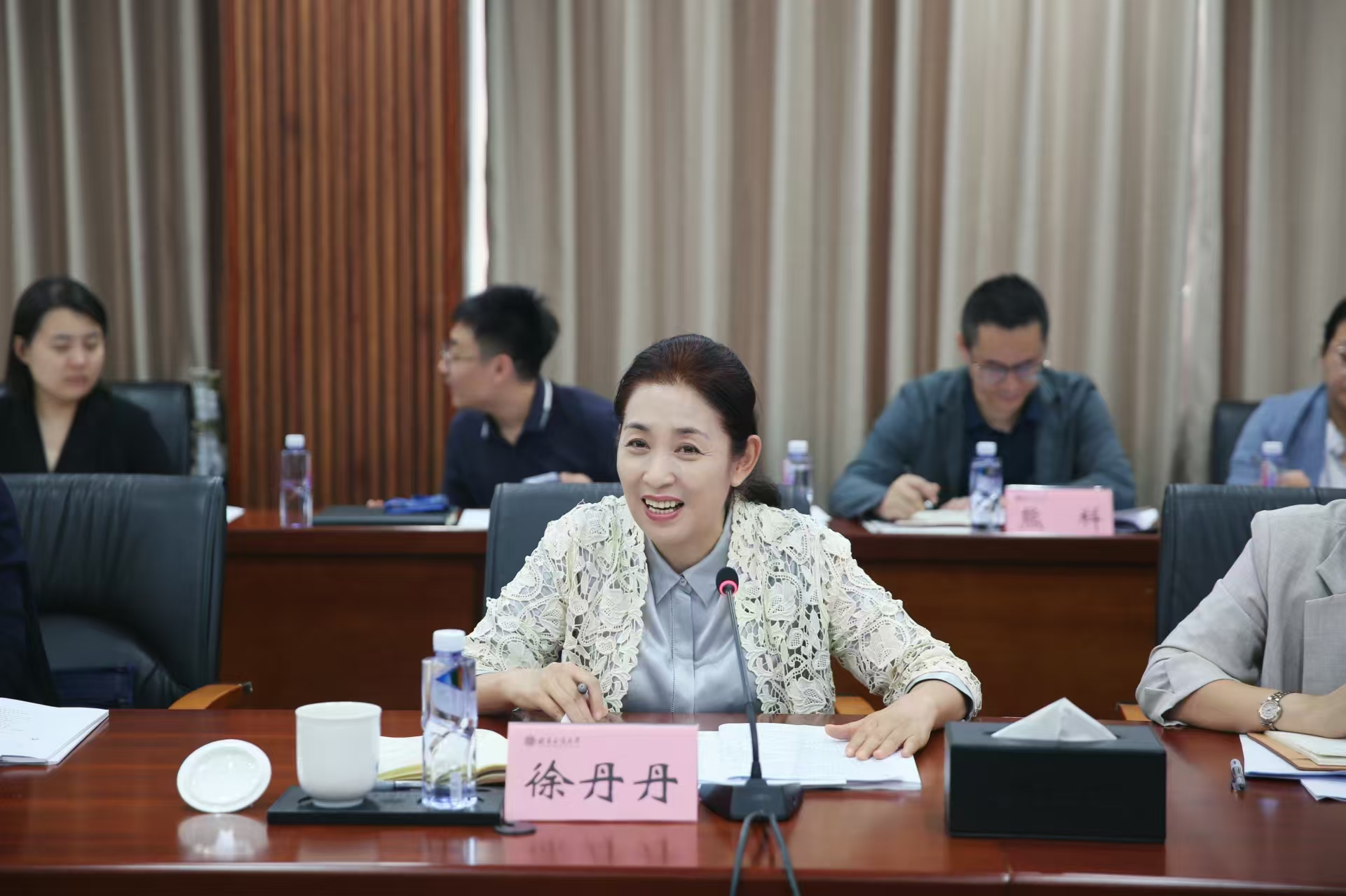 9月11日,學(xué)校審核評估迎評工作部署會暨2024年秋季學(xué)期第一次本科教學(xué)工作例會在良鄉(xiāng)主校區(qū)召開。迎評工作辦公室主任、副主任,各專項工作組組長、副組長,各教學(xué)單位負(fù)責(zé)人、教學(xué)副院長,教務(wù)處各科室負(fù)責(zé)人,各學(xué)院教學(xué)秘書參加會議。會議由學(xué)校黨委常委、副校長徐丹丹主持。