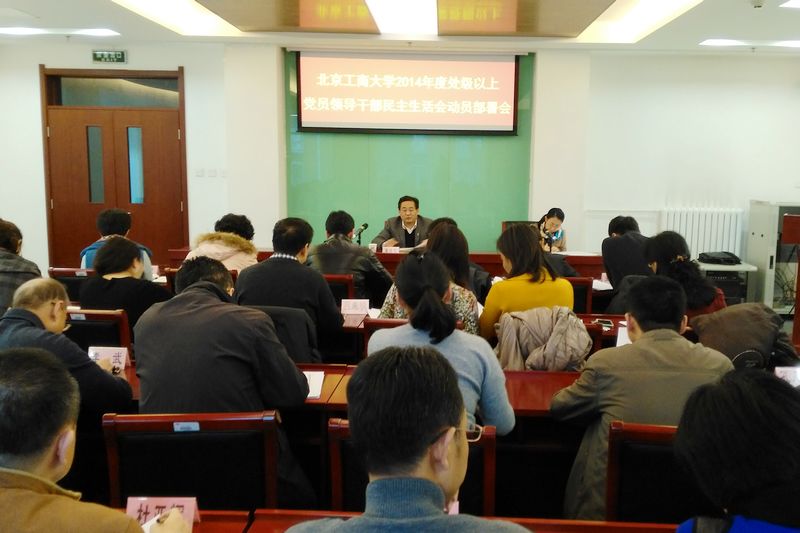 12月22日,學校在阜成路校區召開2014年度處級以上黨員領導干部民主生活會動員部署會。黨委副書記兼機關黨委書記張德玉出席會議。各學院級黨組織負責人、機關黨委各黨支部書記參會。