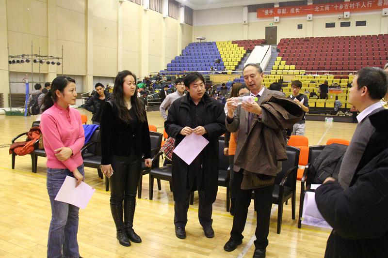 12月29日晚,“中國夢·工商情”元旦晚會彩排在良鄉校區文體館舉行。晚會總指揮黨委副書記盧思鋒親臨彩排現場指導。體育與藝術教學部、團委、宣傳部、后勤管理處、保衛處、工會、各學院及校學生會通力合作,力求為廣大師生帶來一場精彩的晚會。