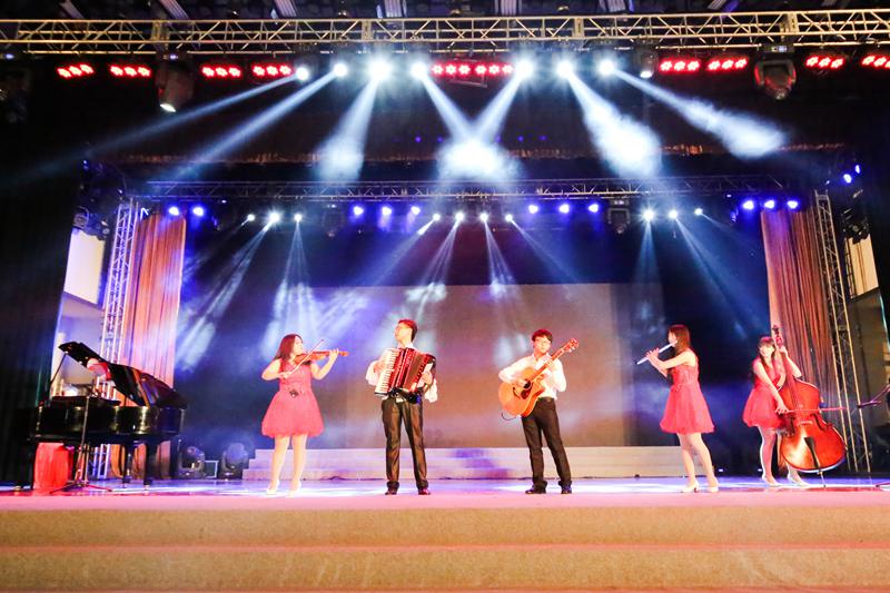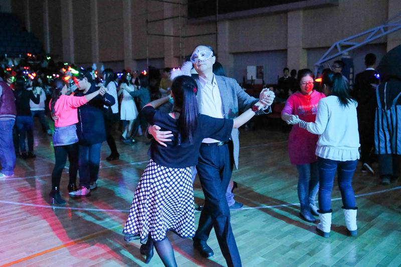 在跨年舞會上共同迎接2015年的到來,將這一夜的精彩推向更高潮。優(yōu)雅的華爾茲、特色的民族舞、歡快的熱舞勁舞,隨著音樂的響起,同學們紛紛被現(xiàn)場的氣氛所感染,緩緩滑入舞池,身體開始跟著節(jié)奏律動起來。鍋莊舞是藏族的民間舞蹈之一,也是學校跨年舞會的保留節(jié)目,深受大家歡迎。今年的舞會上,數(shù)十位身著藏族服裝的同學帶著大家一起跳起了鍋莊舞,大家拉手成圈,輪班唱和,甩腳踏步,齊聲喊“亞”,將舞會掀起陣陣高潮。“我們希望能用自己的舞蹈活躍氣氛。”其中一位藏族同學羅布措姆開心的說道。全場的同學伴隨著不同音樂的變換,改變的是各種舞姿,不變的是所有師生的無限歡樂。
