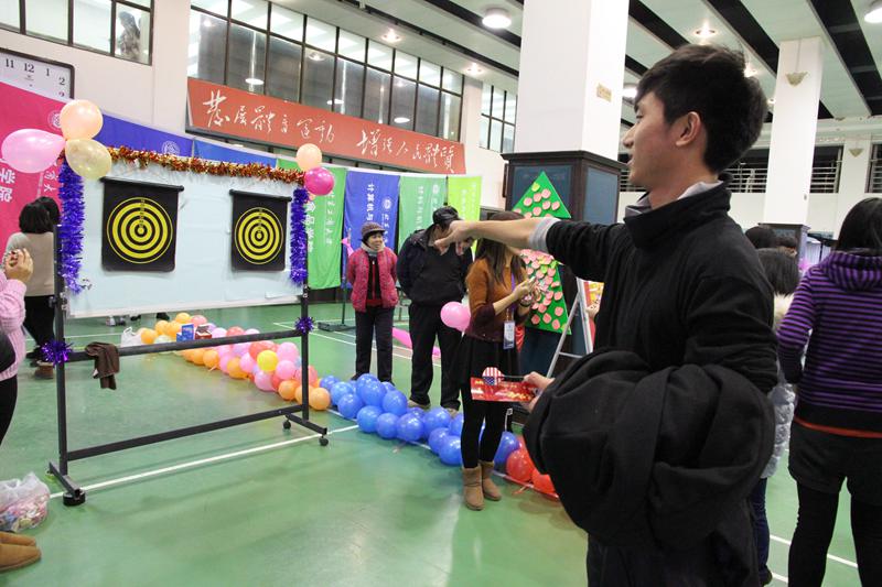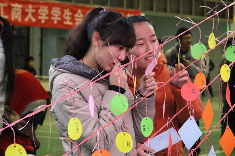 寒冷的北風擋不住工商學子對元旦晚會的熱情,而一層游園會活動也給學子們帶去了別樣的歡樂。本屆游園會由校學生會主辦,九個學院協(xié)辦,大家集思廣益設計了一個個精彩的游戲,準備了各不相同的豐厚禮品。“我們是以一個體現(xiàn)者的角度去設計這些游戲。”商學院的外聯(lián)部部長介紹說,“我們也為同學們準備了學習用具作為小禮物。”計信的同學們則貼心地準備了寫好游戲規(guī)則的小貼士,方便大家參與其中。這使得未能觀看晚會的同學,可以在游園會中感受到新年的熱情。“我覺得游園會非常有趣。”趁著休息時間來到會場的演職人員們這樣說道。游園會讓大家沉浸在了一片喜氣洋洋之中。