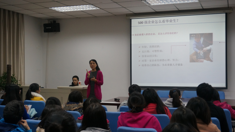 今年的活動主要分為八個模塊:第一模塊為大學生就業幫扶工程巡講活動,包括就業力、職業OFFICE、行政能力提升三場講座;第二模塊為備考系列活動,邀請社會知名培訓機構來我校開展了十場公務員、銀行的筆試、面試講座;第三模塊是走進名企,針對畢業生希望對企業有更直觀了解的需求,就業中心針對專業特色分別與食品學院、材料與機械工程學院、計算機與信息工程學院聯合帶領畢業生實地走訪了知名國企王致和、合資企業北京現代、校友企業雷石科技。第四模塊是人力經理聊面經,聘請GE、FESCO等知名企業的人力資源經理來校為畢業舉辦了四場與求職面試和職業發展相關的報告,并將經驗分享與優質企業現場招聘相結合;第五模塊為學院定制系列活動,主要是面試求職技巧講座;第六模塊是考研留學航標燈,針對畢業生深造需求,聯合理學院、外國語學院名師舉辦高數沖刺講座八講,外語輔導講座七講,特邀教育部留學服務中心為有出國需求的學生舉辦了兩場留學服務講座;第七模塊是“校友和你促膝談”,邀請部分擔任人力資源管理工作的校友回校和畢業生交流求職心得與和職場感悟;第八模塊“女生就業美容院”,針對女性求職需要量身打造,邀請央視知名化妝師與名企人力專員為女性畢業生提供由外到內的求職妝容技巧、女性職場發展與生活平衡等經驗的分享。