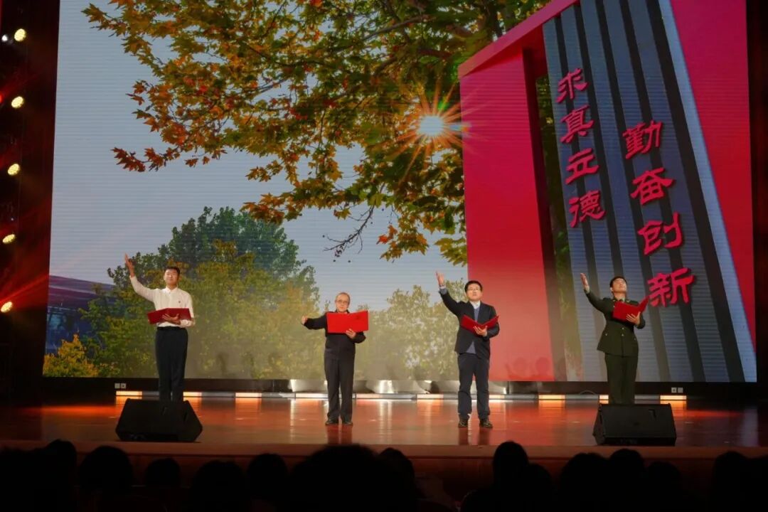 大會在首部校史舞臺劇《炬火相傳:青春的誓言》中拉開帷幕。該劇以北工商的紅色校史為依托,以老校長姚依林為精神符號,藝術化地再現了“一二·九”運動中的真實歷史瞬間,以實際行動踐行著“請黨放心,強國有我”的青春誓言,描繪出北工商青年弘揚偉大抗戰精神、與工商共成長、與祖國同奮進的動人圖景。這份跨越九十年的青春熱血與愛國赤誠,引發全場強烈情感共鳴,掌聲經久不息。