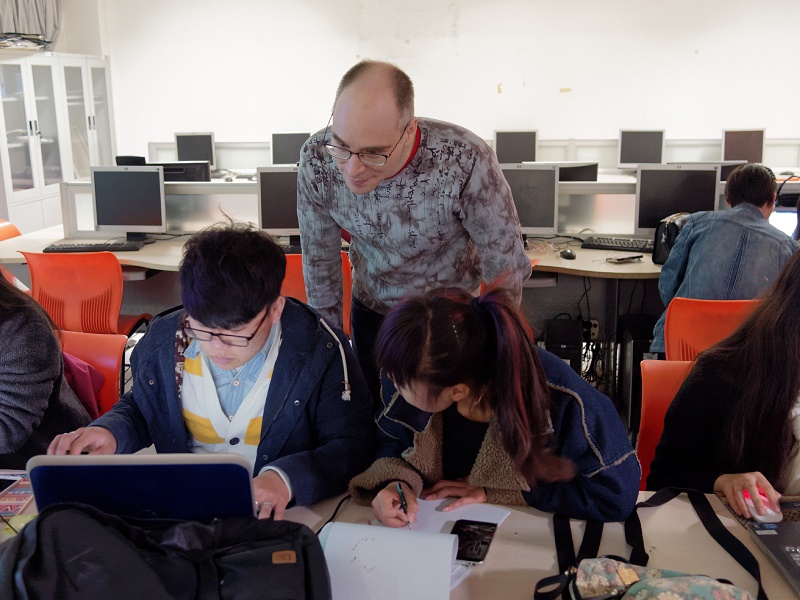 佩特里·奎迪南先生此次擔任客座教學的課程為《交互與體驗》,教學內容主要包括:HTML5語言概述;網絡程序語言的簡要發展歷程;HTML、CSS、Java Script的基本寫法與常用工具;網絡編程語言入門學習資源分享等。針對產品設計類學生的學科背景特點,佩特里先生還穿插講解了編程與設計的關系及發展前景;智能產品、移動互聯網產品的發展前景;計算機編程在設計、游戲領域的應用等內容。講授過程中,他通過多種多樣的教學方法,激發學生興趣,整個授課過程學生參與度極高。作為設計類學生,同學們為自己編寫完成的第一個HTML5程序感到興奮不已,同時對網絡技術與藝術的關系有了更為深刻的認識。