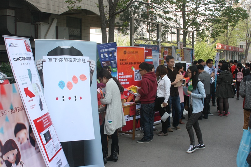 在阜成路校區舉辦的信息達人賽暨數字文獻資源現場咨詢活動向師生介紹了中國知網、維普、萬方、銳思(RESSET)金融研究數據庫、德國Springer期刊數據庫、英國Emerald全文數據庫、超星移動圖書館等30家中外文獻數據庫,是歷屆讀書節數據庫現場咨詢活動介紹數據庫最多的一次。本次活動采取回答數據庫問題、集印花、兌獎品的形式,展示了圖書館的30個數據庫,同時,圖書館最新正式啟用的學術發現一站式檢索服務系統、圖書館微信、中文借閱機等多項新服務也亮相活動現場,引起師生們駐足了解。