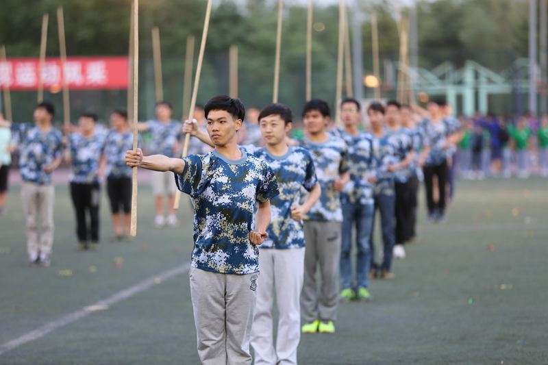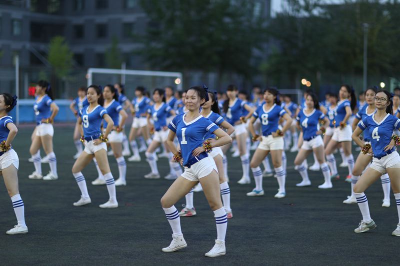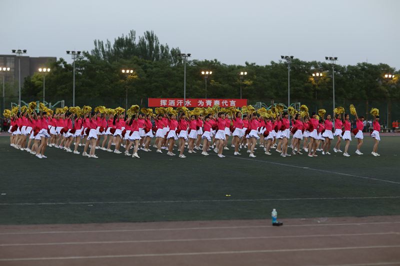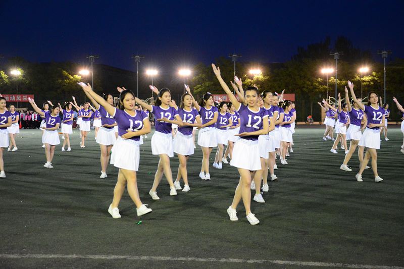 在一片吶喊和掌聲中,比舞拉開序幕。材料與機械工程學院2隊、食品學院2隊、經濟學院red ball隊在律動的音樂“今夜舞起來”中登場,他們用舞蹈彰顯著韻律美,氣質美,青春美,整齊的舞姿和燦爛的笑臉更顯得朝氣蓬勃;來自經濟學院的red young,經過一個月的風雨同行,配合默契,向冠軍發起沖擊;來自商學院的繽紛隊,百名商院學子以颯爽的英姿闡釋著青春的昂揚,恰同學少年,風華正茂;來自藝術與傳媒學院的藝動青春隊也不甘示弱,巾幗英雄,矯健身姿;由體藝部李紅老師指導的阜成路校區同學們帶來的少林棍表演讓人耳目一新,靈活的身姿,熟練的棍法,彰顯著陽剛之氣,將比賽推向高潮。