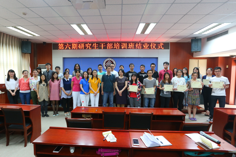報告會結束后,舉行了第六期研究生干部培訓班結業儀式,培訓班優秀學員及培訓班負責人分別作了總結發言,談了本次培訓學習的感受和活動開展情況。熊慧為本期培訓班“優秀工作者”、“優秀學員”頒發證書并合影留念。至此,為期八天的培訓班活動圓滿結束。