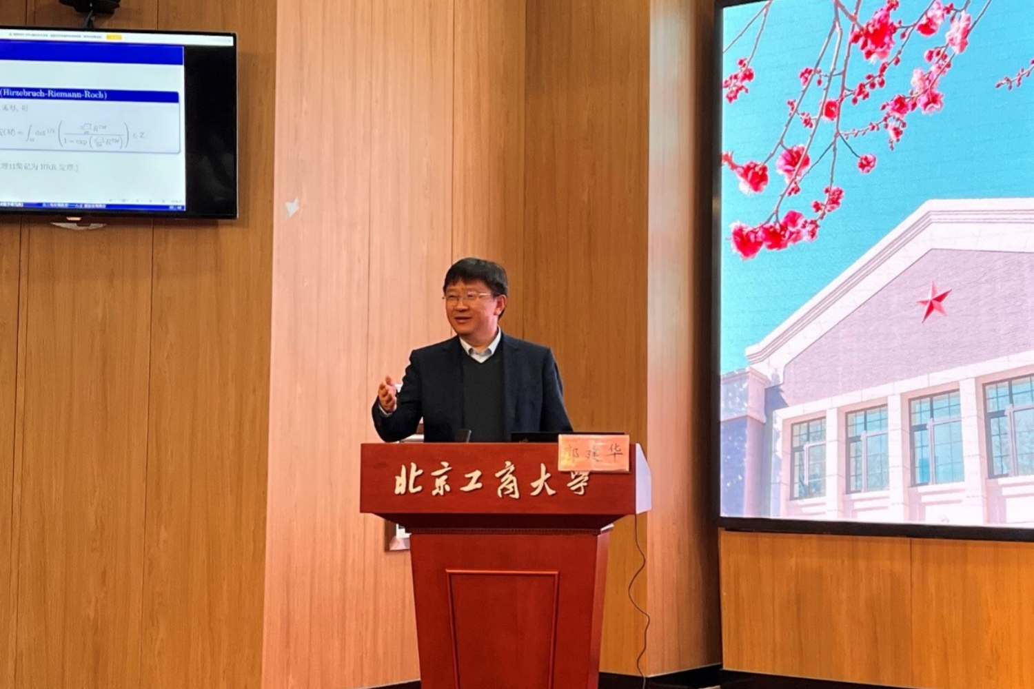 11月7日,著名數(shù)學(xué)家、南開大學(xué)教授張偉平院士應(yīng)邀蒞臨我校并作題為“從三角形到流形——Atiyah-Singer指標(biāo)定理簡介”的學(xué)術(shù)報告,報告會在阜成路校區(qū)舉行。學(xué)校黨委副書記、校長郭建華教授出席報告會并講話,數(shù)學(xué)與統(tǒng)計學(xué)院部分師生參加了本次報告會。報告會由數(shù)學(xué)與統(tǒng)計學(xué)院執(zhí)行院長曹顯兵教授主持。