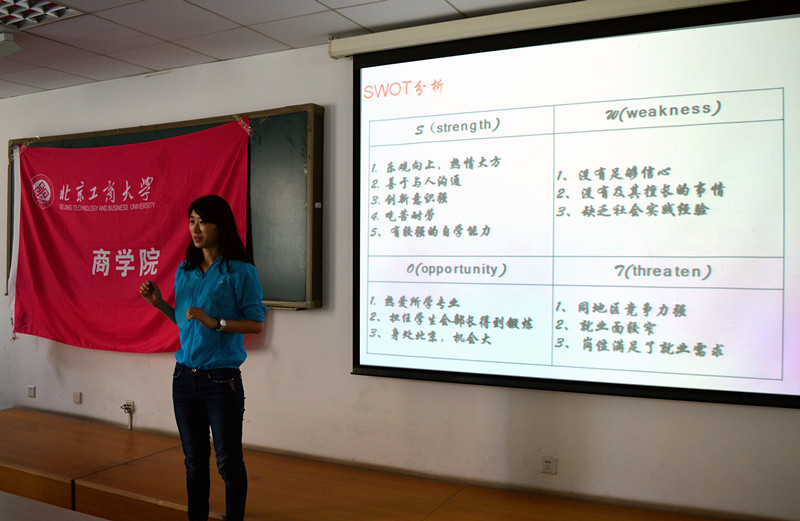 為了引導(dǎo)同學(xué)們更好地認(rèn)識自我,明確發(fā)展方向,合理規(guī)劃大學(xué)生涯,商學(xué)院積極響應(yīng)學(xué)校學(xué)風(fēng)建設(shè)“春風(fēng)行動”號召,于5月27日在良鄉(xiāng)校區(qū)舉辦了第一屆學(xué)業(yè)規(guī)劃大賽。商學(xué)院黨總支書記歐陽愛平、副書記褚才寬以及商學(xué)院輔導(dǎo)員們出席此次大賽。