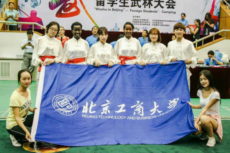 在學校國際交流與合作處和體育與藝術教學部的共同配合下,我校8名外國留學生在體藝部教師李紅的帶隊下參加比賽。經過一番激烈角逐,我校外國留學生武術代表隊榮獲男子初級拳集體一等獎,韓國留學生JAE IK(林在益)獲得男子組個人初級拳第二名,盧旺達留學生MERCI(莫夕)獲女子組個人初級拳第三名,吉布提留學生SOUMEIYA (索美亞)獲得第四名,韓國留學生SUJI(崔秀智)、YUSON(李柔遜)和HYUNAH(宋賢娥)分別獲得第五名、第六名和優秀獎的好成績。我校獲得“武動北京----留學生武林大會”優秀組織獎,李紅老師獲得“武動北京----留學生武林大會”優秀指導教師獎。