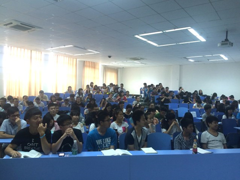 北京代碼王科技有限公司高級工程師鄭赟帶來的是“明解計算機語言”講座,主要面向14級同學。他從事一線編程開發12年,參與了VHDL語言編譯器的開發,主導了VHDL-AMS模擬器的開發,在外企Cadence北京研發中心工作中參與了千萬級代碼的項目維護與升級。鄭老師語言幽默詼諧,將計算機語言的知識與做包子的過程巧妙結合,通俗易懂地解釋編程的基本思想和技巧。他將計算機語言與平時的生活緊密聯系在一起,大大激起了同學們的興趣,不僅幽默生動的講解了計算機語言,還展示了編程效果以及學生的編程作業,那些奇妙的編程效果吸引了在場的同學的目光,使得同學們受益匪淺,也是同學們更加加深了學習計算機語言的決心。