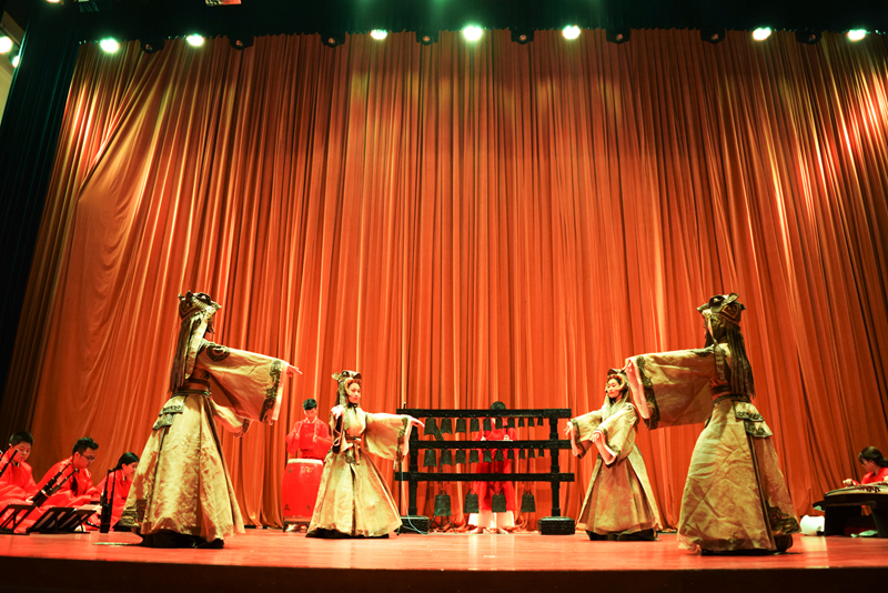 第二樂(lè)章響起的是莊重崇敬的宗廟樂(lè),作為集歌舞禮樂(lè)于一體的祭祀儀式音樂(lè),宗廟樂(lè)經(jīng)常在重大的宗廟祭祀典禮上使用。“北京城建城3060年放在古代就是一種祭祀活動(dòng),宗廟樂(lè)不可或缺”楊春薇團(tuán)長(zhǎng)解釋道,兩首宗廟樂(lè)-—《維天之命》《肆夏》的演奏也表達(dá)出中國(guó)人對(duì)天地和祖先的敬畏之情。