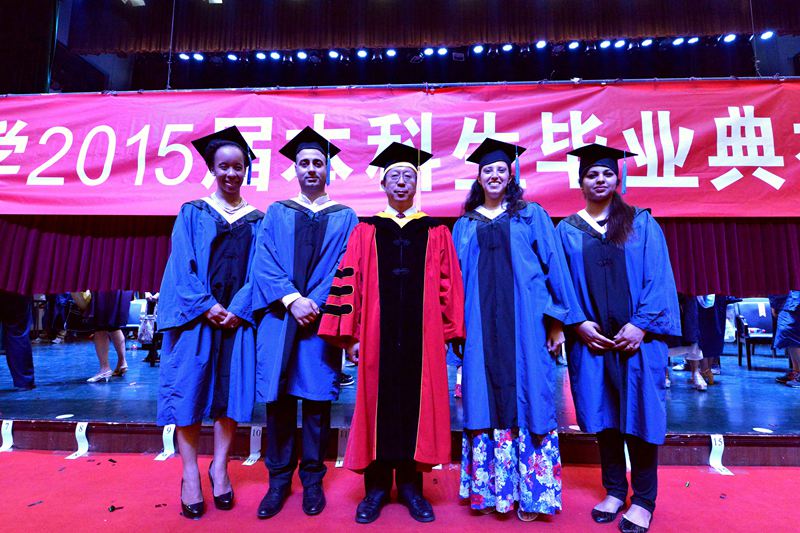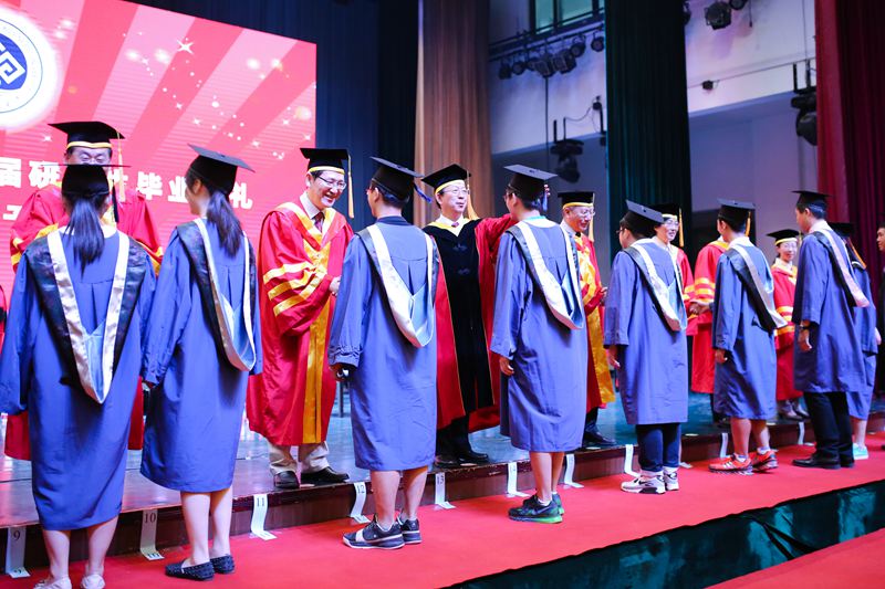 九個學院的研究生畢業生依次上臺接受校領導撥正流蘇、頒發畢業證書并合影留念。值得一提的是,本次畢業典禮上共有來自3個國家的5位留學生獲得碩士學位。這也是近年來我校首批留學生獲得碩士學位。