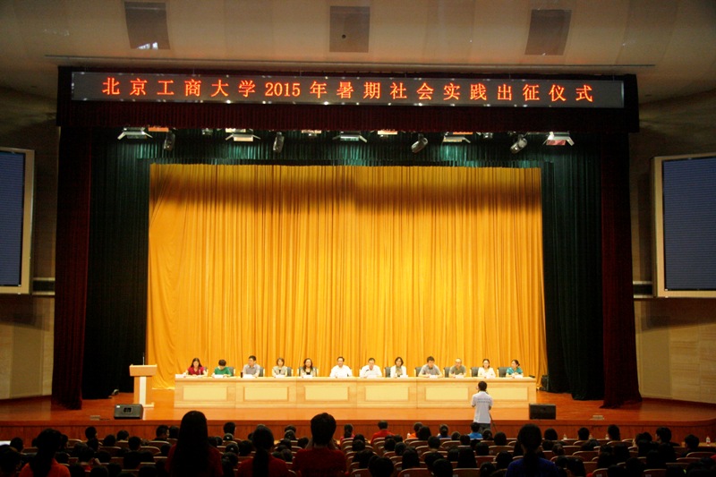 在奏唱國歌聲中,出征儀式拉開帷幕。學校團委書記呂良介紹了本次暑期社會實踐活動背景及情況。為深入學習宣傳貫徹黨的十八大和十八屆三中、四中全會及習近平總書記系列重要講話精神,引領廣大青年學生按照習近平總書記關于“勤學、修德、明辨、篤實”的要求,樹立和踐行社會主義核心價值觀,為實現“四個全面”戰略布局和中國夢努力奮斗的理想信念,在北京市團委的大力支持下,“十鄉百村千人行”已成為我校品牌活動。今年暑假,學校繼續組織全校學生深入開展以“踐行核心價值觀·投身‘四個全面’建設”為主題的實踐活動,分為集中和分散兩種形式進行。集中實踐將延續我校傳統社會實踐項目“十鄉百村千人行”,內容包括對接中學開展暑期夏令營支教活動、紀念抗戰70周年紅色主題宣傳教育實踐活動、調研新農村民生現狀、基層志愿活動等。此外,還將開展“共聚社區青年匯”城市發展服務計劃、“創業園夢,開拓進取”就業創業狀況考察及創業實踐活動、“科技筑夢、助力發展”科技創新實踐活動、“紀念抗戰勝利70周年”愛國主義學習調研活動、“共筑中國夢,青春在踐行”思想教育主題活動及“青年奉獻社會”志愿服務行動。分散實踐將由學生自由組隊開展活動。另外,今年學校還為每名參加“十鄉百村千人行”集中實踐的同學上意外傷害保險,以保障同學們在實踐期間的人身安全。此次活動力求以理論學習、政策宣講、基層建設、走訪調研、志愿服務等實踐形式,立足首都,面向全國。