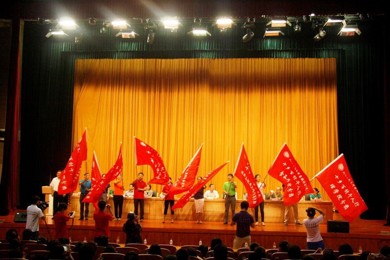 隨后,由我校黨委副書記張德玉為各實踐分團授旗。