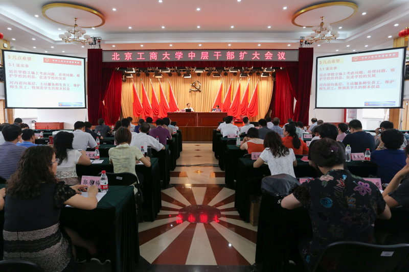 7月10日,學校在阜成路校區召開中層干部擴大會議。校領導孫寶國、張德玉、謝志華、李朝鮮、張耘、鄭文紅、方德英、邱曉平出席會議。會議由黨委副書記董竹娟主持。全體中層干部和全體系主任參加了會議。