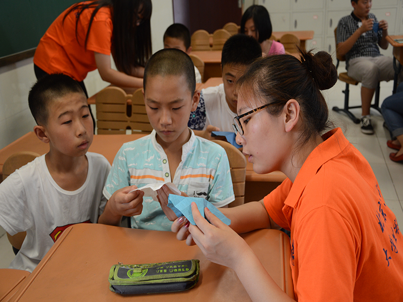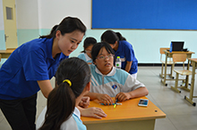 小老師們?yōu)閷W生們準備了與自己專業(yè)課程息息相關的化妝品的講座、手工課和趣味數(shù)學課。在手工課上老師和同學們合作編花繩;數(shù)學是理學院的特色專業(yè),課上老師耐心的講解和同學們積極的配合使本來枯燥的數(shù)學課變得更有意思;同樣,化妝品專業(yè)是理學院的特色專業(yè),小老師們特別為同學們準備了一節(jié)化妝品講座,增加同學對化妝品的了解與認識,激發(fā)他們對化妝品的興趣。通過這個講座告訴同學們,化妝品的是一種自我管理的方式,是清潔自己的一種工具,整潔的個人形象可對我們日常工作生活的影響是極大的。