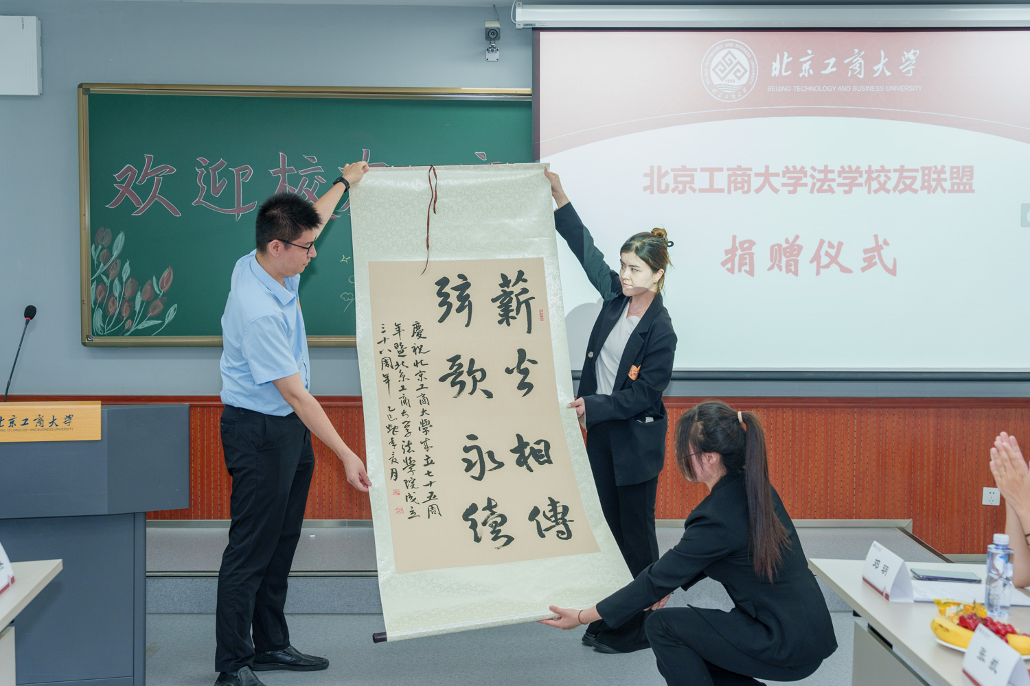 會上,北京浩略律師事務所創始人、執行主任孫統彪向法學院捐贈法學教育基金,助力法學教育事業的薪火相傳。副會長張法水為母校獻上了一副精心創作的書法作品。參會師生深情回顧求學歲月和師生情誼,大家暢敘情誼、共謀發展,現場氣氛熱烈而溫馨。