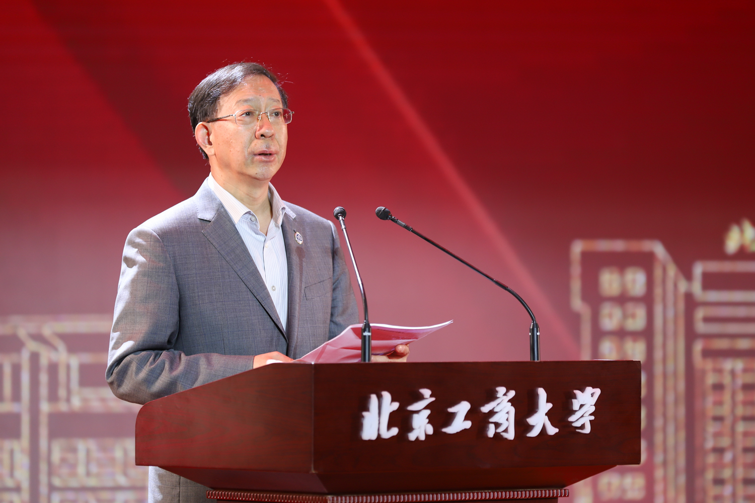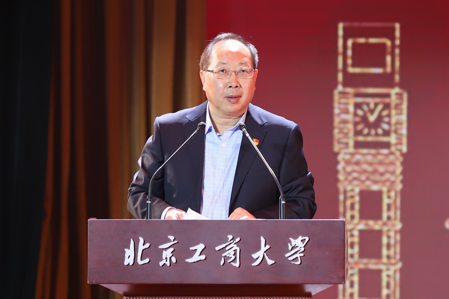 黃先開談到,在“一二·九”愛國學生運動中,時任北京市學聯秘書長姚依林,是組織領導“一二·九”運動的骨干,曾于1955年至1958年兼任北京工商大學前身中央商業干部學校校長,為學校發展注入了紅色基因。從建校時起,紅色基因就伴隨著北工商的建設發展,黨和國家領導人毛澤東、周恩來、劉少奇等都曾多次接見學校師生,紅色血脈流淌在北工商師生心中,代代相傳,歷久彌新。當前,學校邁進全面建設高水平研究型大學的新征程,新時代呼喚新擔當,新時代需要新作為,同學們要時刻謹記習近平總書記“立大志、明大德、成大才、擔大任”的時代囑托,以黨的旗幟為旗幟、以黨的方向為方向、以黨的意志為意志,弘揚黨的優良傳統,在斗爭中經風雨、見世面、壯筋骨、長才干,努力成為堪當民族復興大任的時代新人;要樹立夢想從學習開始、事業靠本領成就的觀念,勤于學習、善于思考,不斷認識和掌握真理,打好扎實的知識基礎;要堅持理論聯系實際,積極投身社會實踐,在基層一線砥礪品格,在實踐中發現新知、運用真知,在解決實際問題的過程中練就過硬本領;要心系“國之大者”,樹立不負人民的家國情懷、追求崇高的思想境界、增強過硬的擔當本領,愛國奉獻、勇于創新,繼續傳承發揚學校與生俱來的紅色基因,努力做學校改革發展的奮進者、開拓者、奉獻者,譜寫學校建設高水平研究型大學的新篇章!