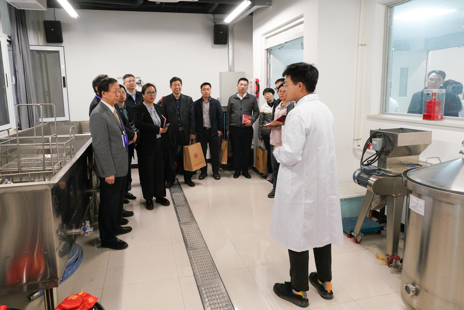 會(huì)議后,與會(huì)領(lǐng)導(dǎo)和專(zhuān)家在北京工商大學(xué)相關(guān)領(lǐng)導(dǎo)的帶領(lǐng)下,參觀了北京工商大學(xué)數(shù)字未來(lái)中心。該中心作為專(zhuān)門(mén)機(jī)構(gòu)負(fù)責(zé)統(tǒng)籌推進(jìn)學(xué)校教育數(shù)字化轉(zhuǎn)型各項(xiàng)工作,學(xué)校以此為抓手,建設(shè)了“直錄直播、互聯(lián)互通、資源共享”的智慧環(huán)境,是不斷推動(dòng)信息技術(shù)與教育教學(xué)深度融合的創(chuàng)新成果和重要平臺(tái)。與會(huì)領(lǐng)導(dǎo)和專(zhuān)家還參觀了中國(guó)輕工業(yè)釀酒分子工程重點(diǎn)實(shí)驗(yàn)室和國(guó)酒科普館。