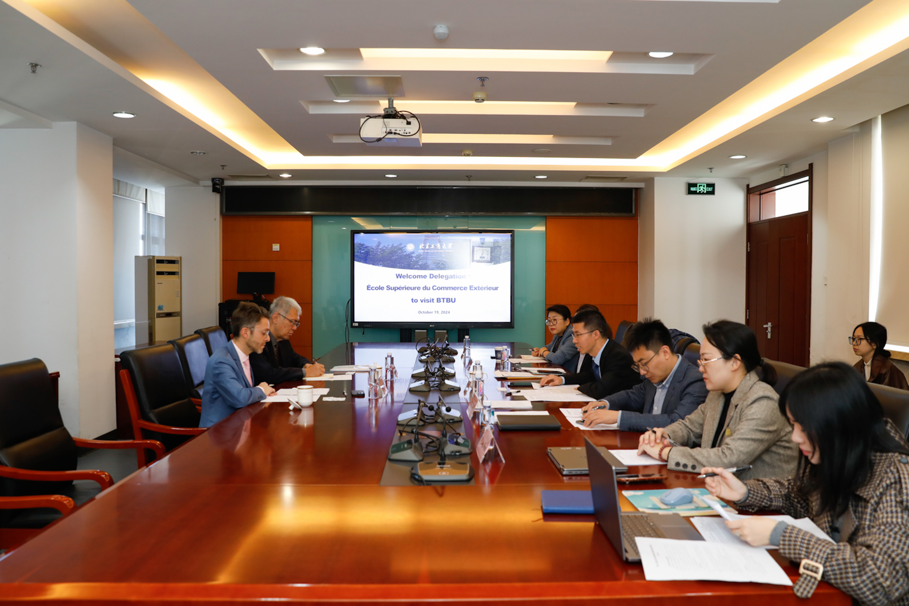 在與法國高等對外貿易學院會談期間,毛新述對法國高等對外貿易學院長期以來對我校的支持表示衷心的感謝,他回顧了兩校建立合作十年以來的密切交往,雙方在學生交換、商科項目等方面開展的相關合作。隨后,雙方院校介紹了兩校近年來的發展概況和未來發展方向,并就各培養層次合作項目的合作意向、項目詳情、申請選拔流程進行了溝通交流。雙方希望未來能夠探索在更廣泛領域內的深入合作和交流,并期待在碩士聯合培養項目、師生交流互訪等方面加強合作交流,推動兩校在各領域的深度融合與共贏發展。