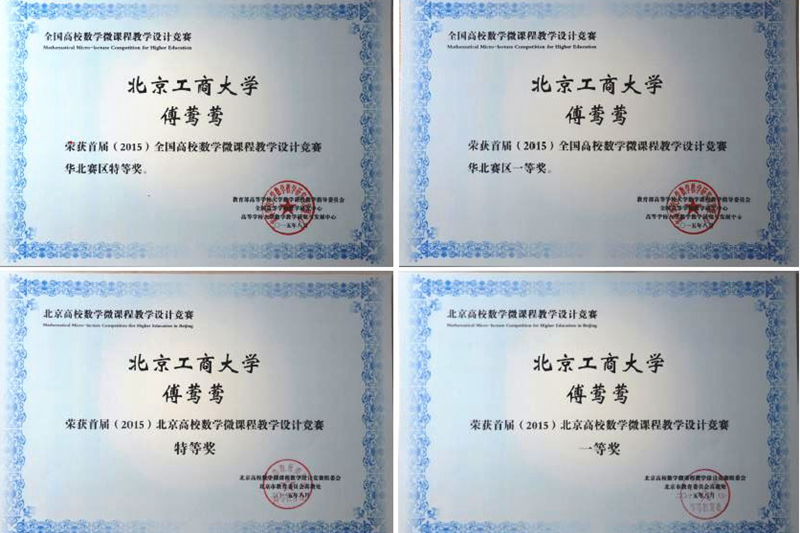 819日,首屆(2015)全國高校數學微課程教學設計競賽全國決賽在西安交通大學隆重舉行。我校理學院傅鶯鶯老師的作品《貝葉斯公式》繼獲得北京市特等獎、華北賽區特等獎后,進入全國決賽現場會評環節,與來自全國各地的90余件作品角逐全國特等獎和全國一等獎。她的另一作品《數列極限的概念》也榮獲了北京市及華北賽區一等獎。822日,傅鶯鶯老師應邀在華北賽區頒獎會上現場展示了特等獎作品。