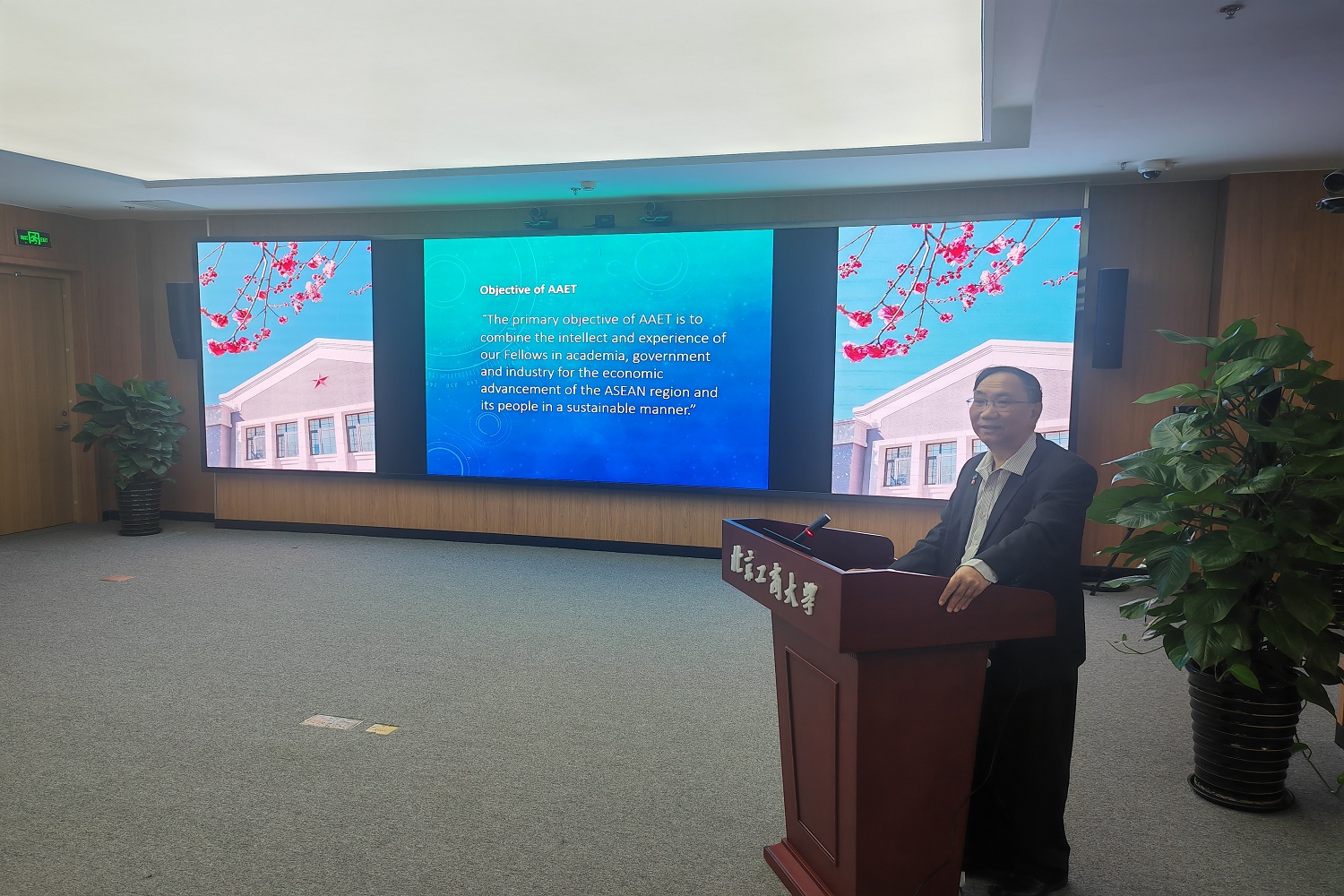 蔡賢德感謝學校熱情接待,他詳細介紹了東盟工程與技術科學院成立背景、工作內容和相關國際交流情況。他表示,東盟工程與技術科學院自成立以來,致力于匯集東南亞地區工程技術方面的相關科技資源和智力資源,促進雙邊及多邊的交流合作,推進東盟國家科學與技術發展。此外,蔡賢德也介紹了馬來西亞拉曼大學的學科設置和學校發展情況,希望未來兩校能夠加強對接,開展師生交流、推進科研合作。