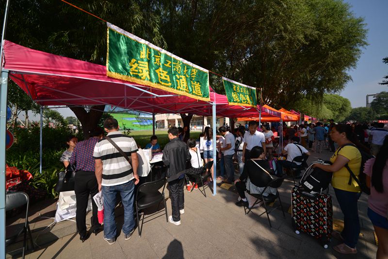 一張張熱情的面孔一同迎接新生的到來,各項報到程序有條不紊。校領導譚向勇、張德玉、謝志華、張耘、鄭文紅、方德英、董竹娟分別走訪了阜成路校區、良鄉校區,在各個學院報到處,他們親切詢問了工作人員迎新工作情況,了解新生報到注冊情況,并走進宿舍,與新生及家長們熱情地交流,鼓勵新生盡快適應大學生活。良鄉高教園區管委會主任蔡本睿等領導親臨迎新現場,了解新生報到情況。
