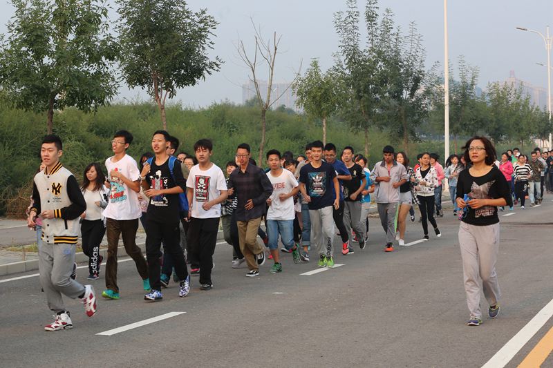 9月16日早6:30,學(xué)校良鄉(xiāng)校區(qū)學(xué)生宿舍打破了往日的寧?kù)o,同學(xué)們?nèi)宄扇骸⒄勑︼L(fēng)生,紛紛前往籃球場(chǎng)、學(xué)生活動(dòng)中心、圖書(shū)館等地點(diǎn)集合。6:50,近3000名2015級(jí)新同學(xué)以學(xué)院為單位,正式開(kāi)始了第一天的晨讀晨練活動(dòng)。