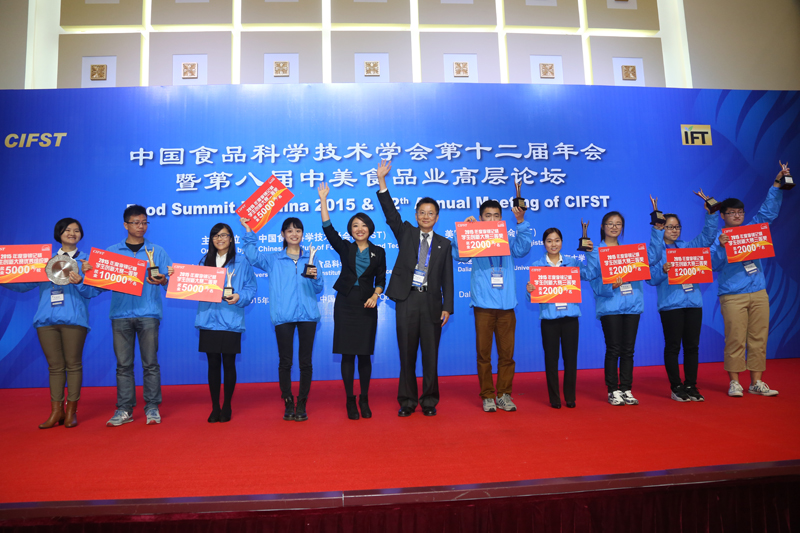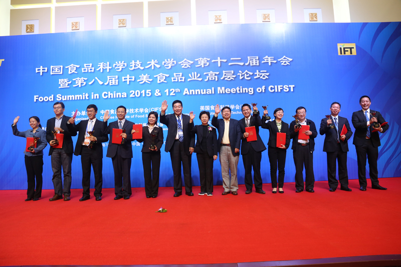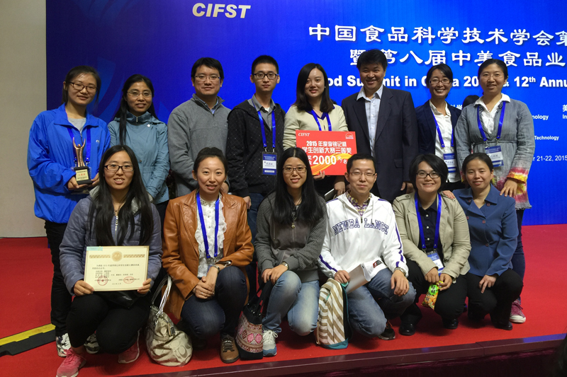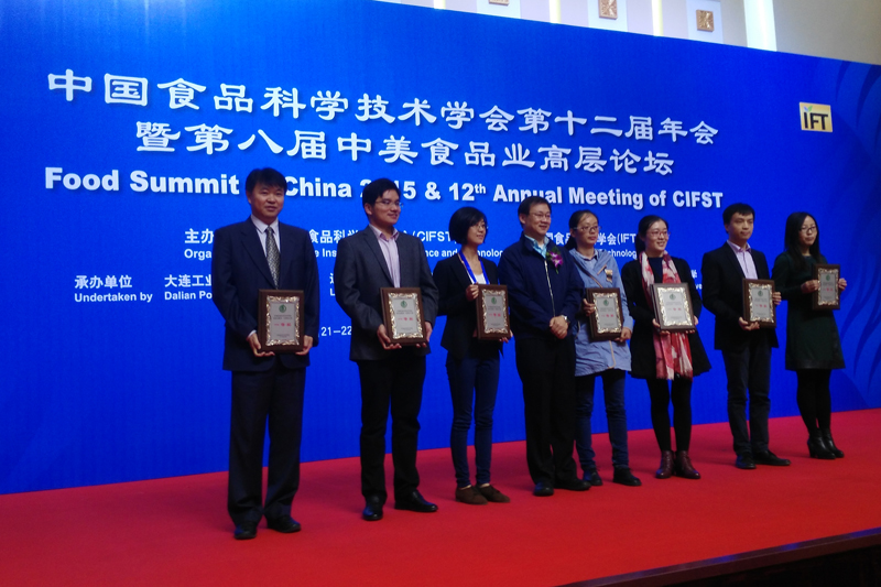 大會頒獎儀式上,我校食品學院王靜教授榮獲2015年度中國食品科學技術學會科技創新獎-杰出青年獎;食品學院王成濤教授榮獲2015年度中國食品科學技術學會科技創新獎-優秀論文一等獎;食品學院曹雁平教授指導的張澤宇、牛悅等學生榮獲2015年度李錦記杯學生創新大賽三等獎。