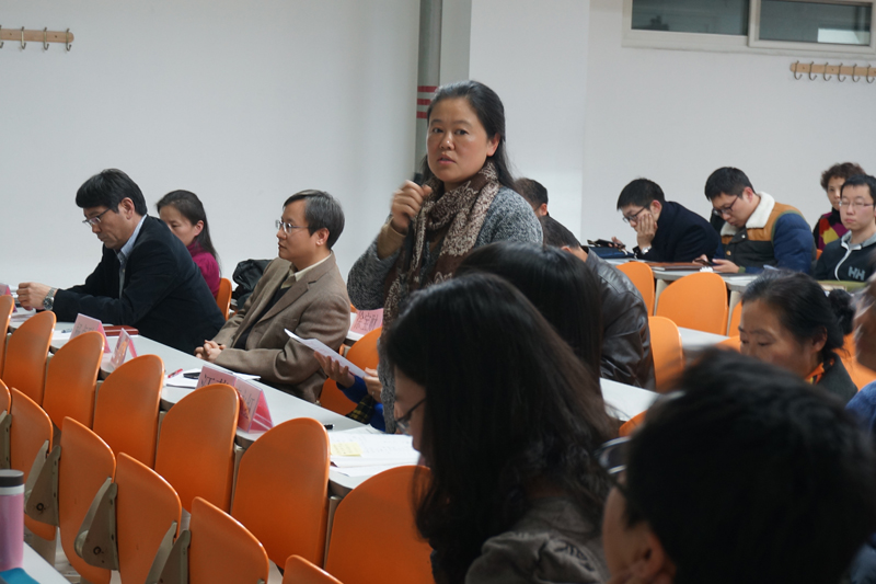 學院參加教學優秀獎評選的四位教師分別作了時長為20分鐘的教學演示,張嬋教師和熊科教師的演示內容豐富,富有趣味性,與生活結合密切,有吸引力。安磊教師講課重點突出,語速適中,在授課過程中注意與學生互動。任虹老師講課風格穩重大氣,深入淺出,循循善誘。演示完畢,在座的各位專家對每位參評老師的演示進行了點評,肯定了四位教師的優點,認為四位教師教態端正,教學內容詳實,同時也指出了存在的問題并提出建議。
