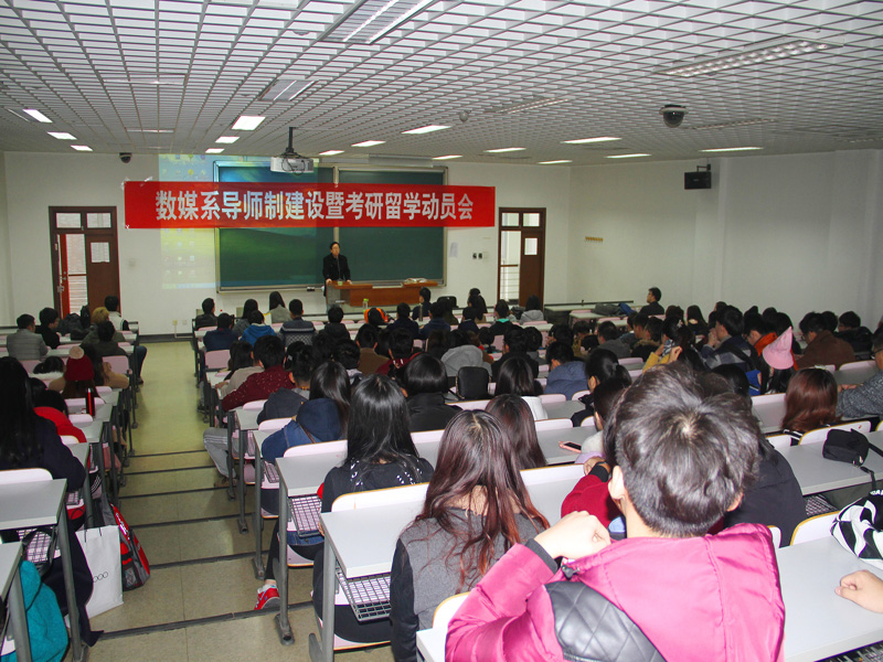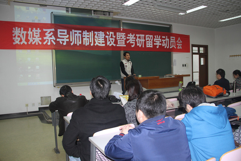 11月18日,藝術與傳媒學院在良鄉校區召開了數字媒體藝術系導師制建設暨考研留學動員會。藝傳學院黨委書記林剛、副院長鄭子云、數字媒體藝術系的全體教師以及數字媒體藝術專業13級、14級、15級的全體學生參加了會議。會議由數字媒體藝術系系主任孫進主持。本次會議旨在提升學生學習英語熱情,營造良好的考研和出國留學氛圍;同時結合學院的特色機制“導師制”,進一步深化本科教學綜合改革,建立良好的教師與學生的互動機制。