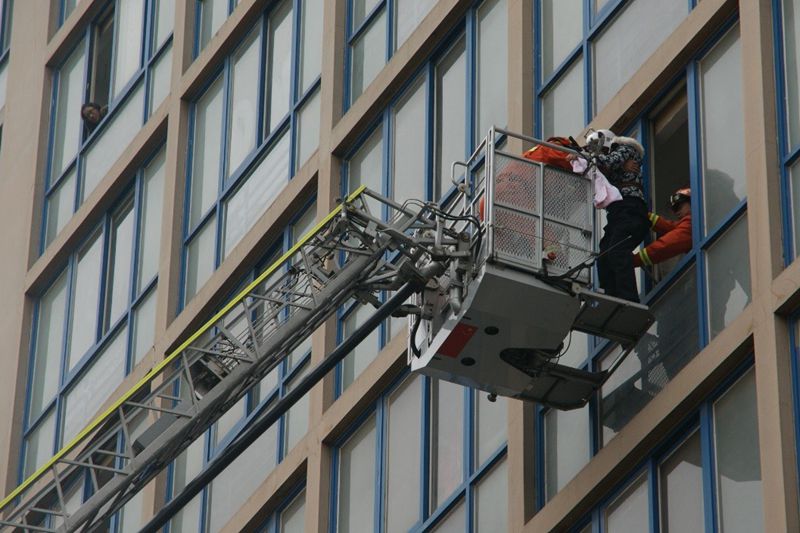 下午一點,隨著總指揮鄭文紅的一聲令下,消防演習(xí)正式開始。此刻,警報鳴響,煙霧滾滾,來自研一和大四的近400名學(xué)生以毛巾掩面,快速而有序地從煙霧中穿過。與此同時,另一隊學(xué)生伴隨著興奮而緊張的心情,參加了消防充氣帳篷的模擬逃生體驗,學(xué)習(xí)到了受益終生的火災(zāi)逃生技能。隨后,參演師生饒有興致地觀看了由海淀消防支隊使用消防車輛云梯進行的高層救生模擬表演,只見消防員迅速升起消防云梯,從高達七層的窗戶中救下兩名“被火圍困人員”。兩名志愿者是由保安員和研究生親自扮演,逼真的情景引起在場師生們的熱烈掌聲。最后,在消防隊員的示范指導(dǎo)下,參演師生分別在操場火堆前用滅火器進行了滅火練習(xí),演習(xí)活動取得圓滿成功。