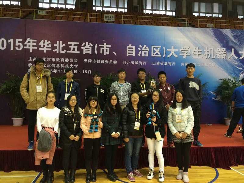11月14日,2015年華北五省大學生機器人大賽在京舉行。本次比賽由北京市教育委員會主辦,北京信息科技大學等單位承辦。來自清華大學、西安交通大學、北京理工大學、臺灣建國科技大學等全國66所院校(含港澳臺地區高校),1700多名師生參加,672支參賽隊伍參加了本次大賽。我校信息工程專業學生分獲各項目組一、三等獎。
