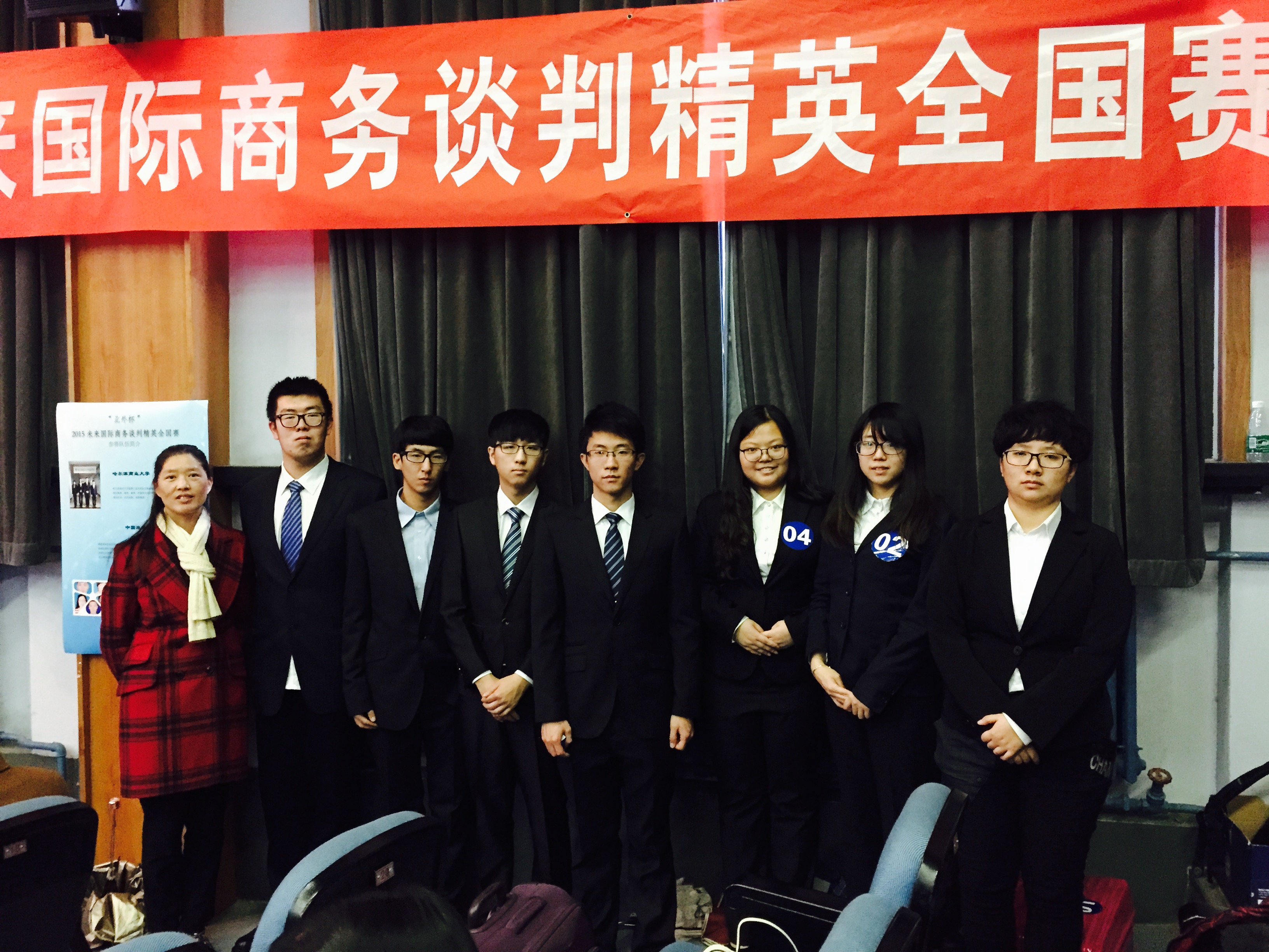 11月21日至22日,在學校教務處和經濟學院的支持下,我校代表隊由經濟學院朱振榮、王茜擔任指導老師,在“北外杯”2015未來國際商務談判精英全國賽中榮獲二等獎,商學院張偉楠、計信學院王璽獲“優秀談判手”稱號,朱振榮獲“優秀指導獎”。