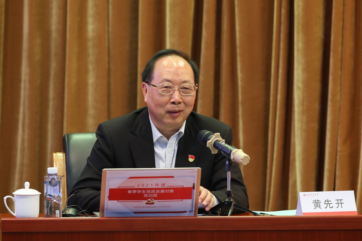 開班儀式后,黃先開書記以《學黨史,悟思想,努力成為堪當民族復興重任的時代新人》為題,為培訓班學員作了第一場專題報告,從“為什么學”、“學什么”、“怎么學”三個方面,對黨史學習的意義、要求和方法作了深度解讀。黨的歷史是最生動、最有說服力的教科書,黃書記通過列舉百年來的客觀史實,詳細闡釋了習近平總書記在黨史學習教育動員大會上提出的“三個必然要求”和六個方面的學習要點,總結了開展黨史學習教育的重大意義和重點任務。他結合我校學生實際,對黨史學習方法做出指導。他強調,習近平總書記提到“學黨史、悟思想、辦實事、開新局”,作為青年學子,要在學好黨史、領悟思想的同時,將“辦實事”落到實處,以實際行動助力學校促發展、開新局。