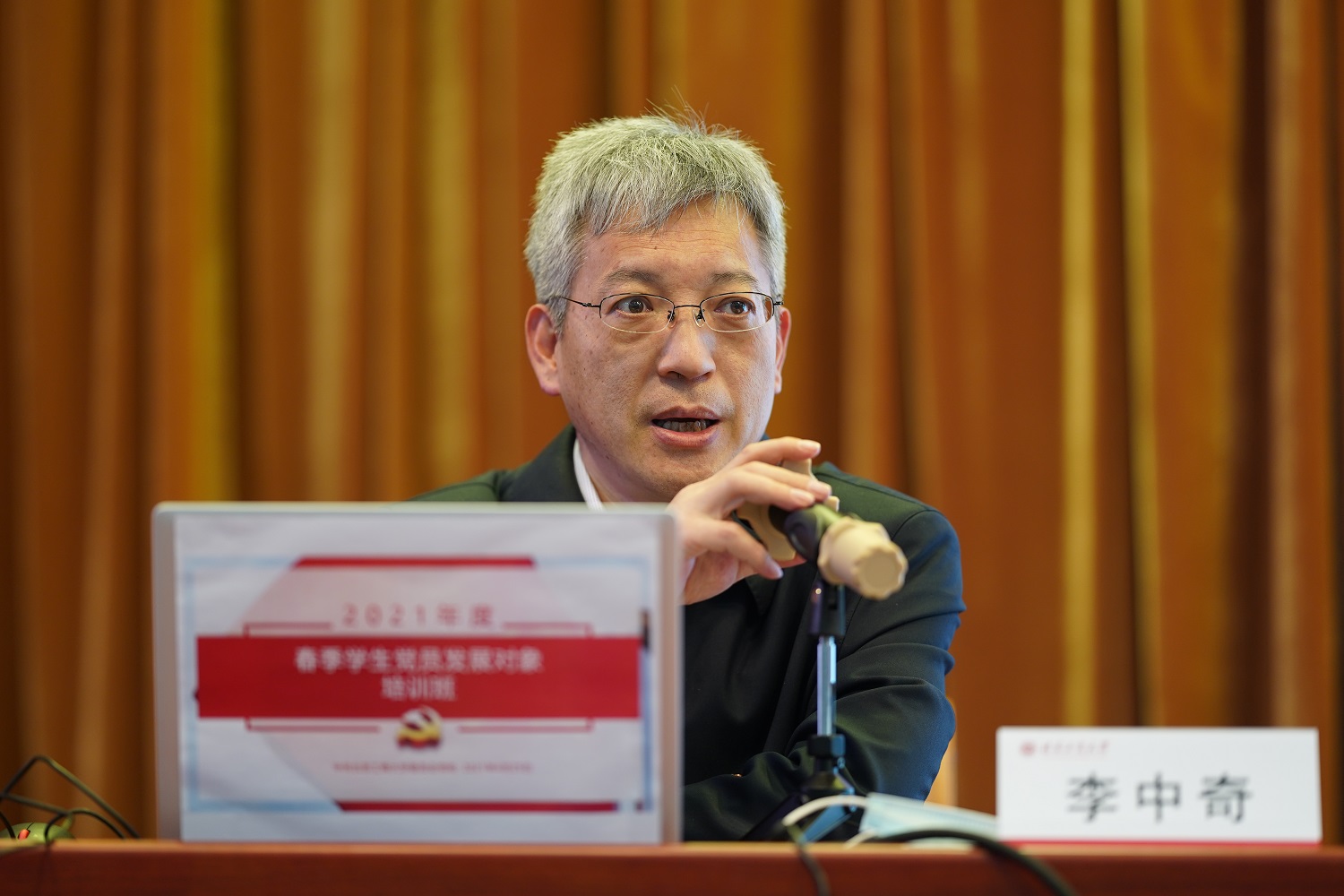 下午,黨委副書記李中奇帶來題為《銘記百年黨史,感悟思想偉力,全力做好新時代的“答卷人”》的黨課。李中奇副書記以“開天辟地”“改天換地”“翻天覆地”“驚天動地”為脈絡,回顧了我黨的百年輝煌歷程,從中提煉出“有情懷、有信仰、有格局、有擔當、有韌性、有海量、有紀律、有輝煌”的黨性黨品,告誡學員要成為一名合格的共產黨員,需要有作為黨員的榮譽感、使命感和責任感,掌握好個人與社會的關系、個人與國家的關系以及黨員與黨的關系,勇敢擔當起民族復興的時代使命,為學校建設高水平研究型大學貢獻力量。