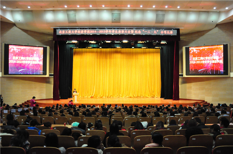 12月2日晚,經(jīng)濟(jì)學(xué)院在良鄉(xiāng)校區(qū)舉辦2014-2015學(xué)年學(xué)生表彰大會(huì)暨紀(jì)念“一二·九”合唱比賽,表彰先進(jìn)、樹(shù)立榜樣、重溫革命歷史、唱響愛(ài)國(guó)旋律。學(xué)生處副處長(zhǎng)徐紅京,經(jīng)濟(jì)學(xué)院院長(zhǎng)徐丹丹、黨委書(shū)記張正平、副院長(zhǎng)郭馨梅、黨委副書(shū)記杜亞輝、班主任代表、全體輔導(dǎo)員以及各年級(jí)學(xué)生500余人參加了大會(huì),大會(huì)由團(tuán)總支書(shū)記單紫薇主持。