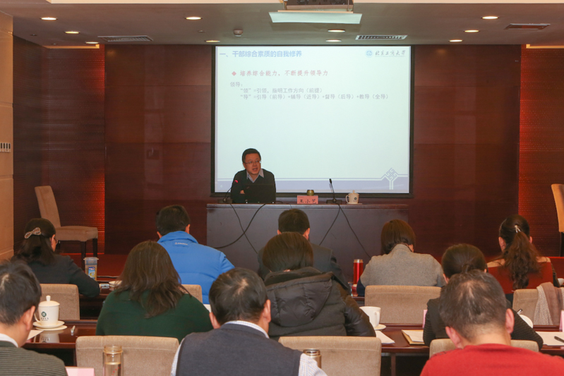 培訓內容涵蓋如何做好職能部門管理工作、學院管理工作、學校管理工作流程、財務工作制度等四個方面。學校辦公室(黨委辦公室)主任王小藝做了題為“加強修養、敢于擔當、勇于創新、為學校轉型發展而奮斗努力”的報告,與大家探討了領導干部應具備的能力素養、學校轉型發展的重要工作以及學校辦公室管理工作流程;教務處處長魏中龍從為人、處事、管理和修身四方面闡述了大學中層干部的管理之道;財務處處長陳軻講解了國家、北京市財務管理要求和學校財務管理制度,強調要規范管理,用好經費,做遵守財經紀律的表率;理學院院長曹顯兵闡述了做中層干部的幾點思考,從有信心、有方法和有原則三方面與新提任中層干部分享了做中層領導干部的體會和要求。