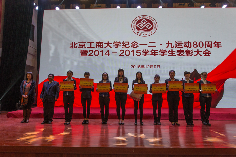 為引導和激勵大學生繼承和弘揚愛國精神,表彰優秀,樹立榜樣,12月9日,學校紀念一二•九運動80周年暨2014-2015學年學生表彰大會在良鄉校區召開,會上表彰了9類獲得市級以上獎項的學生集體和個人。校長孫寶國院士、黨委副書記張德玉、副校長謝志華、方德英出席活動,并與嘉賓一同為獲獎學生頒獎。相關職能部門負責人、各學院黨政領導、教師代表、市級獲獎學生代表、2015級本科生代表參加表彰會。