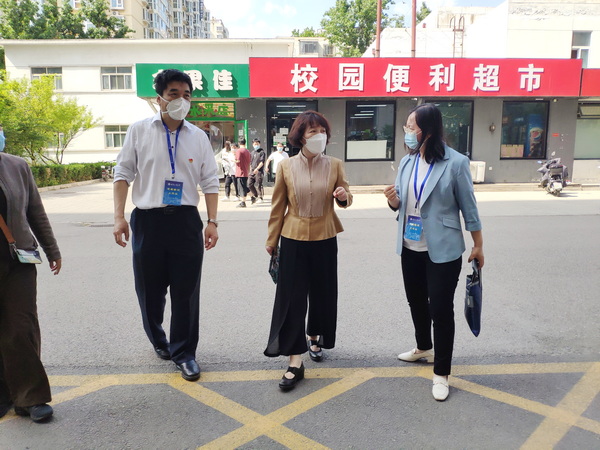 在線下,5月16日,歐陽媛同志走訪阜成路校區校門、食堂、核酸檢測現場等,實地監督指導防疫工作。與此同時,專職紀檢干部富斌、李東利、安歆、王晨先后駐校靠前監督,及時匯總校園疫情防控情況,針對校門管控、核酸檢測、人員底數、物資入校、就業幫扶、心理疏導、輿情監測、安全穩定等情況,當好信息樞紐,發揮監督“前哨”作用,同時堅持每日巡查關鍵點位,確保各項防控措施真正落地見效,做實防疫監督。