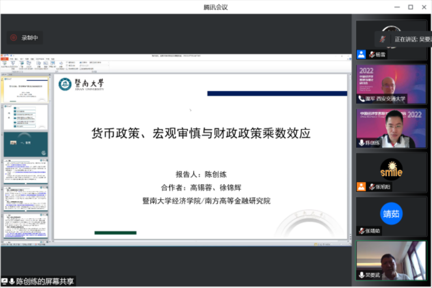 下午,研討會8個分論壇以線上形式開展論文匯報與討論。分論壇邀請《經濟研究》編輯和來自北京大學、清華大學、中國社會科學院與德國哥廷根大學等高校的知名學者擔任主持人和點評人。研討會征集到境內外高校與科研機構的學者的110篇論文,經專家評選,其中33篇論文入選會議。分會場主題涵蓋中國特色社會主義政治經濟學、中國特色發展經濟學的思想與理論貢獻、經濟高質量發展理論與政策、數字經濟、市場改革與企業發展、經濟思想史等。逾千名學者、師生線上參加分論壇,聽取論文匯報并參與討論,共同交流學術思想。