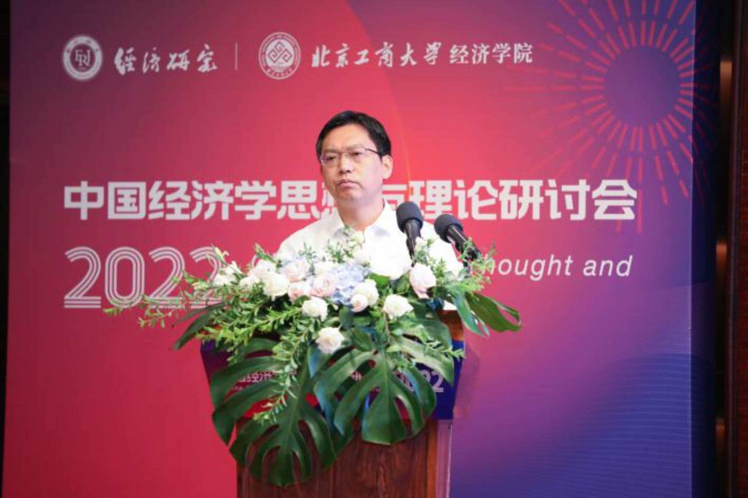 開幕式上,校黨委書記黃先開致辭。他在致辭中對各位參會的專家和代表表示熱烈歡迎和感謝。他指出,2022年是我國進入全面建設社會主義現代化國家、向第二個百年奮斗目標進軍新征程的重要一年,黨的二十大也即將召開。當下研討引領時代發展的經濟學理論,具有特殊重要的意義。恰逢《習近平經濟思想學習綱要》發行,習近平經濟思想深刻回答了新時代經濟發展怎么看、怎么干等一系列重大理論和實踐問題,是我國經濟高質量發展、全面建設社會主義現代化國家的科學指南,也是現代經濟學思想與理論研究的根本遵循。黃先開呼吁經濟學者堅持不懈用習近平新時代中國特色社會主義思想武裝頭腦、指導實踐、推動工作,立足于中國經濟發展的實踐歷程,在思想和理論上不斷創新,為新時代中國經濟發展建言獻策。黃先開表示,北京工商大學是新中國成立后中央批準創辦的第一所商科學校,傳承與生俱來的紅色基因與商科血脈,始終堅持黨的領導,深耕家國情懷,開拓創新,走在前列,是北京市重點建設的高水平研究型大學。應用經濟學科是學校的優勢學科,多年來聚焦數字經濟、新發展格局、財稅體制改革、普惠金融、數字金融、“一帶一路”等重大問題,主動服務國家、區域和行業發展,為國家相關規劃政策制定及首都經濟社會發展貢獻智慧。黃先開書記預祝本屆研討會取得豐碩成果,成為引領中國經濟學思想與理論前行方向的盛會。