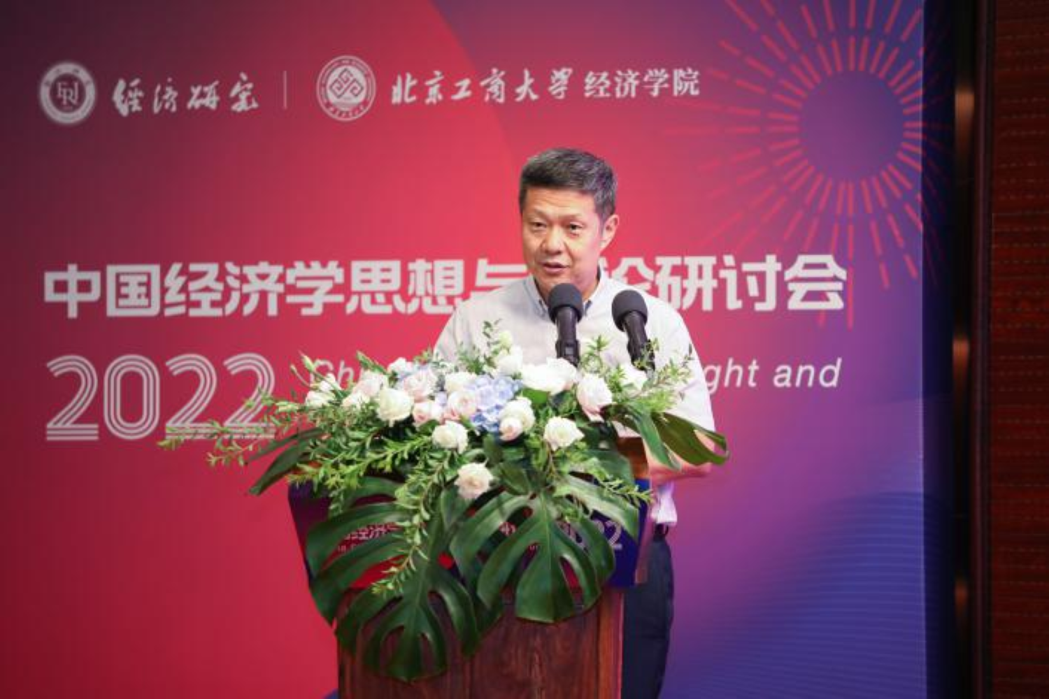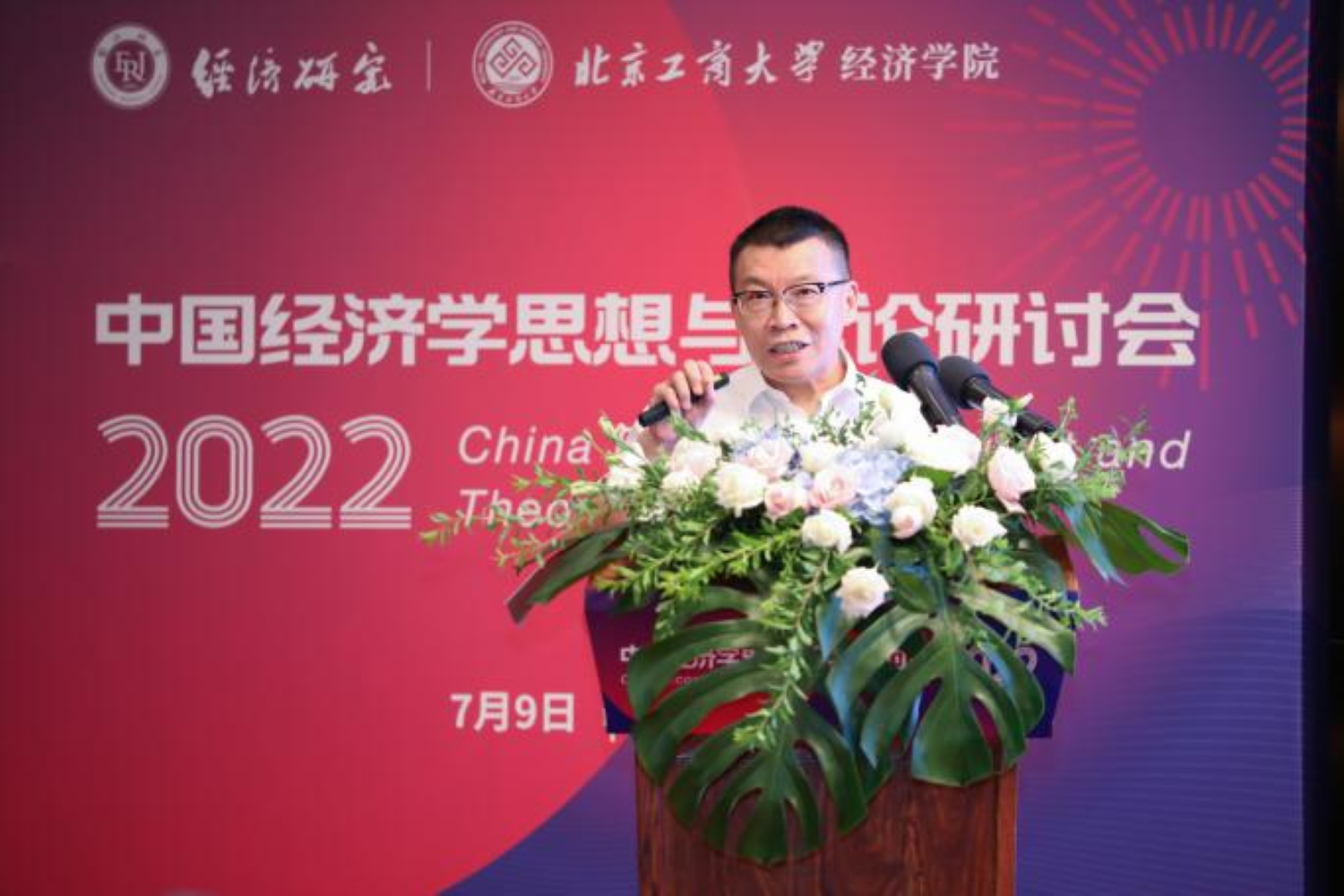 中國社會科學院經濟研究所所長、《經濟研究》主編黃群慧在開幕式致辭中提到,習近平總書記在中國人民大學考察時強調,加快構建中國特色哲學社會科學,歸根結底是建構中國自主的知識體系。黃群慧表示,構建中國特色經濟學的自主知識體系,要以馬克思主義為指導,以習近平經濟思想為指導,以中國經濟學教材、手冊、年鑒建設等學科基礎項目為抓手,將習近平經濟思想全面融入中國特色經濟學科體系建設中,以重大的理論和經濟現實問題為主攻方向,將學理化的闡釋和學術化的表達習近平經濟思想作為中國特色經濟學學術體系創新的核心要求,不斷創新完善學術理論體系、研究組織體系、平臺支撐體系、評價考核體系,推進中國經濟學學術體系的發展,以推進政治話語的學理化、學術化、大眾化,中國話語的國際化為基本的要求,用習近平經濟思想統領中國特色經濟學的話語體系建設。《經濟研究》期刊主動適應中國特色社會主義經濟理論發展的新趨勢和中國特色社會主義市場經濟發展的新要求,堅持馬克思主義的基本立場、觀點、方法,強調對我國重大現實問題的理論研究。黃群慧指出,構建中國經濟學自主知識體系是我們當代經濟學人的重大使命,也是中國經濟學思想與理論研討會創辦的宗旨意義所在,希望研討會能夠為探討中國經濟學思想與理論搭建平臺,為建構中國經濟學的自主知識體系做出貢獻。